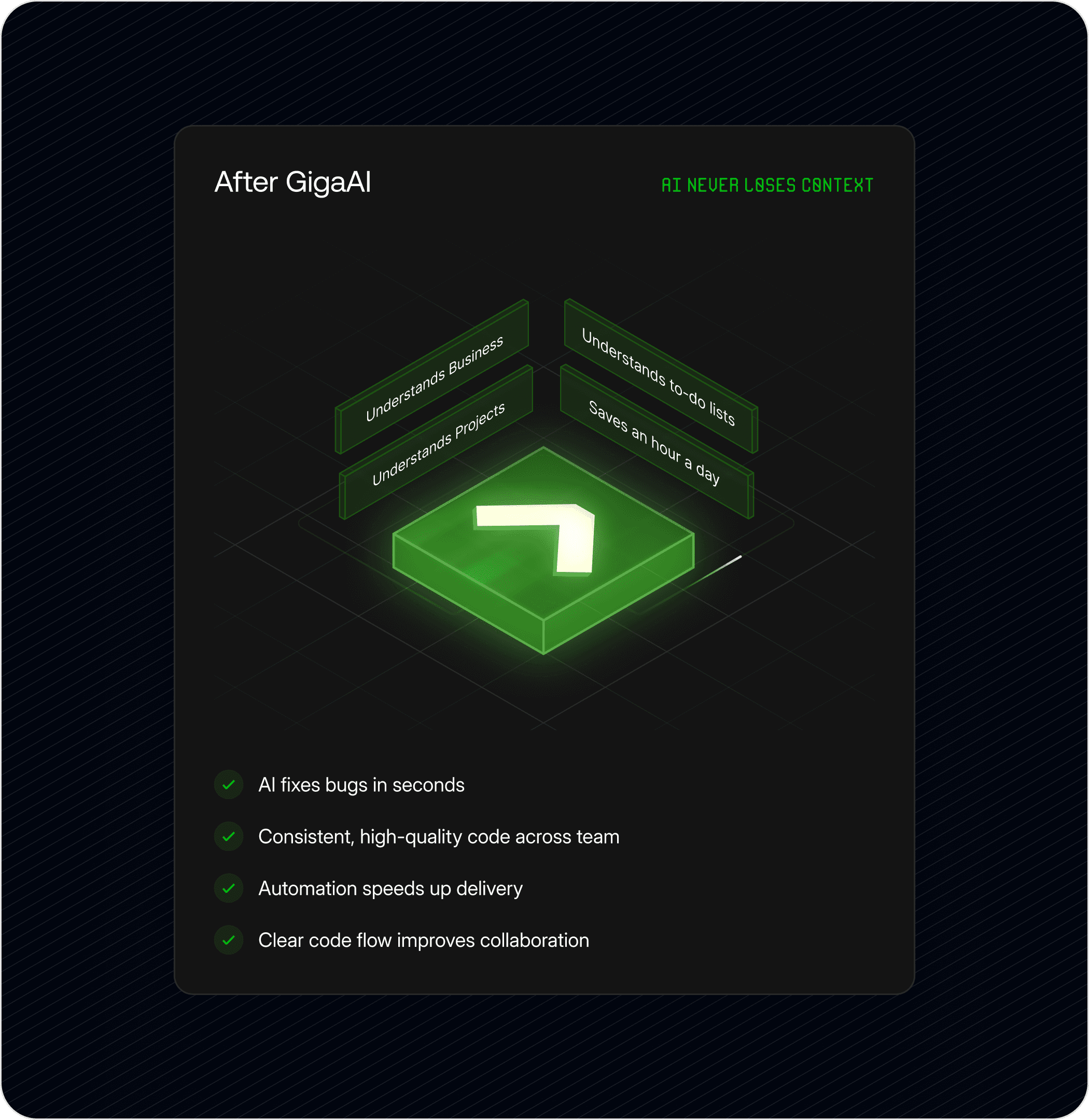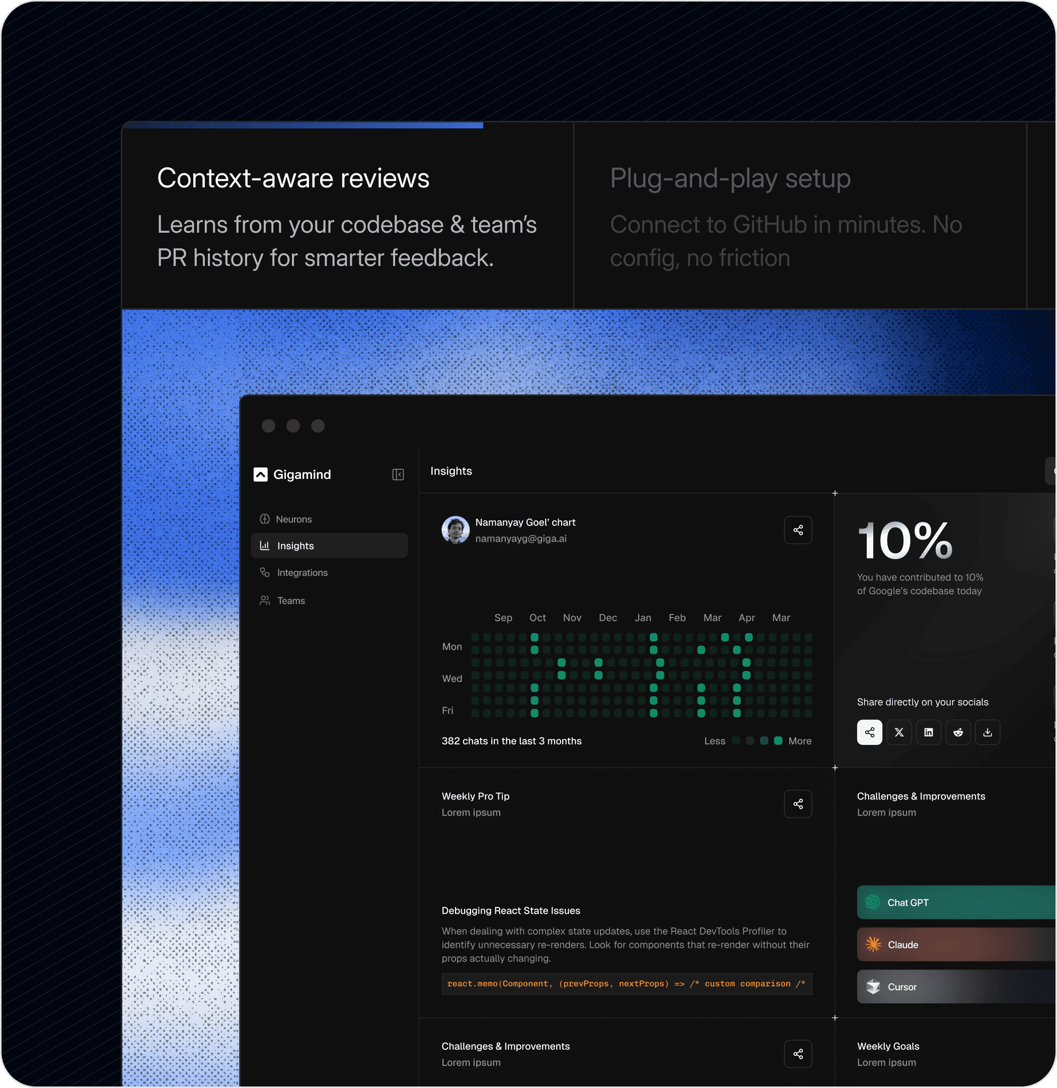GigaMind is a developer-focused AI platform that adds a context layer to codebases, helping AI understand code better and work correctly the first time—allowing developers to build faster with fewer iterations and less friction.