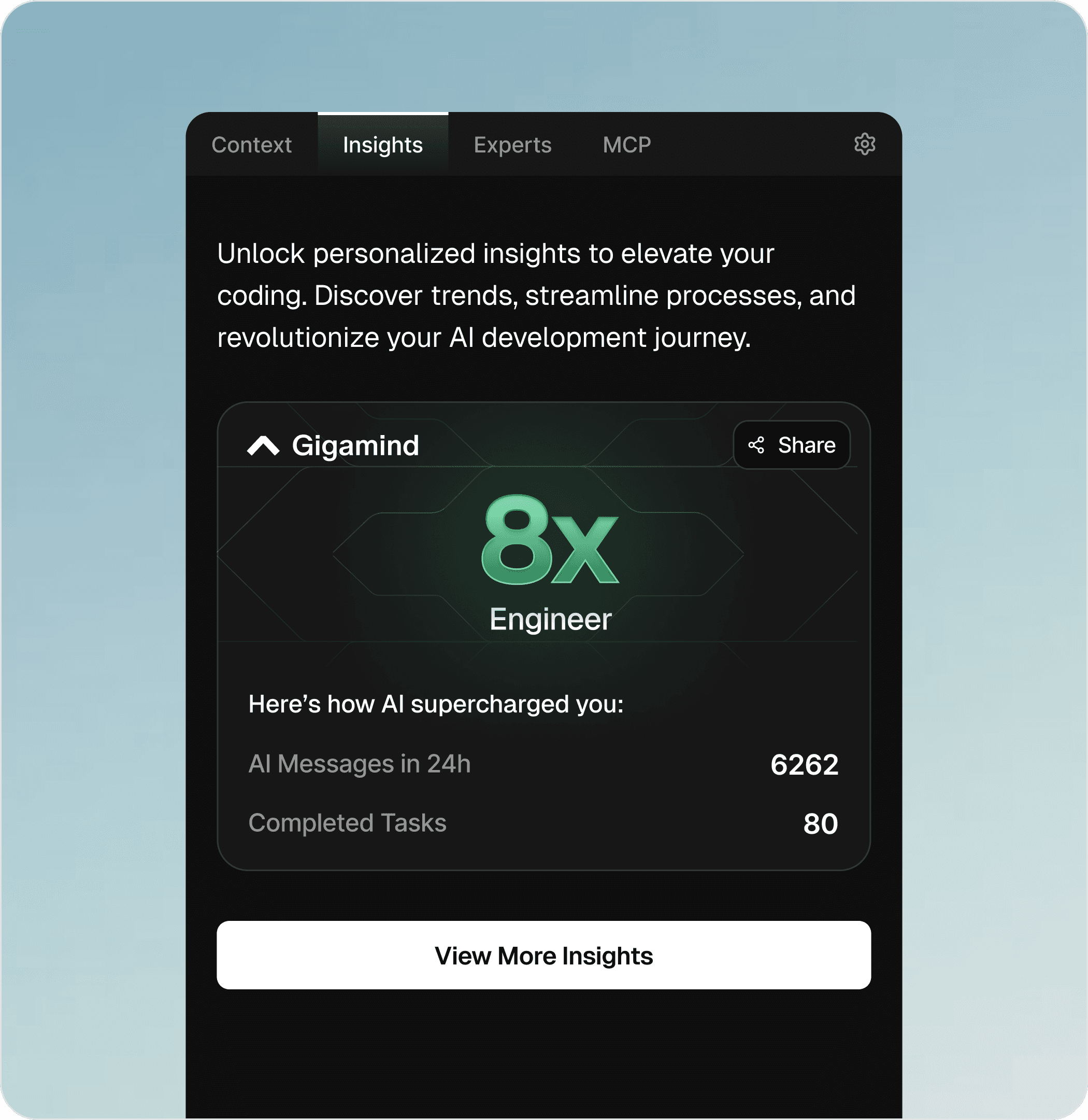 In a focused two-week sprint, we redesigned GigaMind’s IDE plugin experience, gamified onboarding, dashboard, chat interface, and social-sharing widgets—creating a cohesive product system that balanced technical depth, usability, and developer delight.