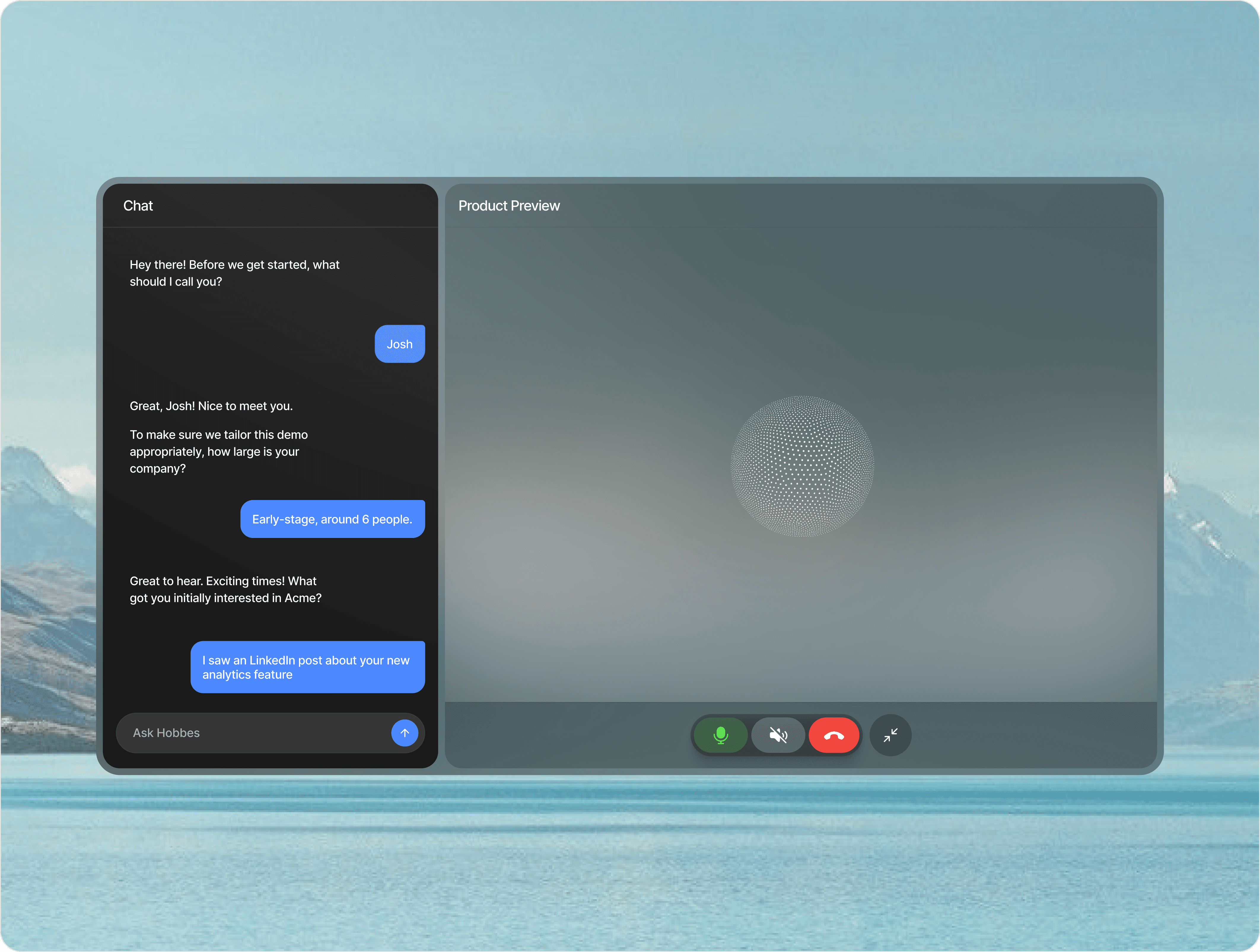 Hobbes is a Silicon Valley–based, seed-funded AI startup that runs conversational product demos for every website visitor, helping teams qualify users, answer questions, and drive warm leads to sales calendars automatically.