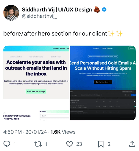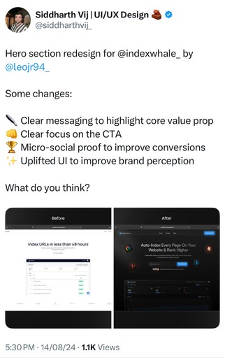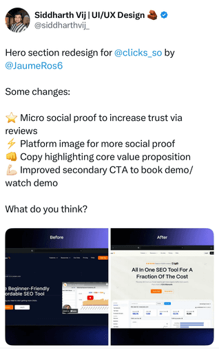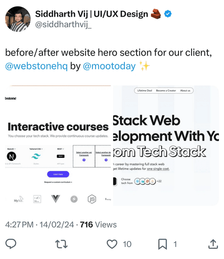 We onboard you on Slack & analyze your current hero section, identify weak points, and map out a strategy for better messaging, design, and conversions.